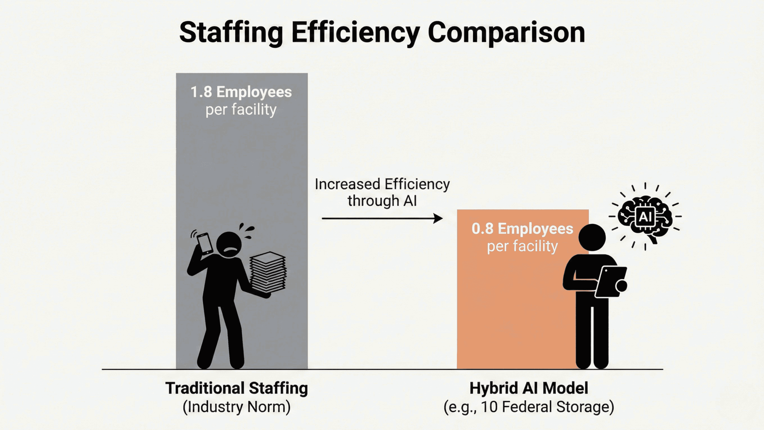 Companies like 10 Federal Storage in Raleigh, North Carolina, have achieved an employees-per-facility ratio of just 0.8 (compared to the industry norm of 1.8-2.0) through AI adoption. This isn’t about replacing your team—it’s about amplifying their effectiveness.