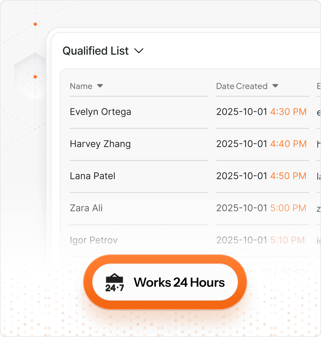 Keep your business moving no matter the day or hour. EasyBee responds to calls and messages the moment they come in, 24/7/365. Qualified inquiries are captured automatically and ready for follow-up. No missed leads.