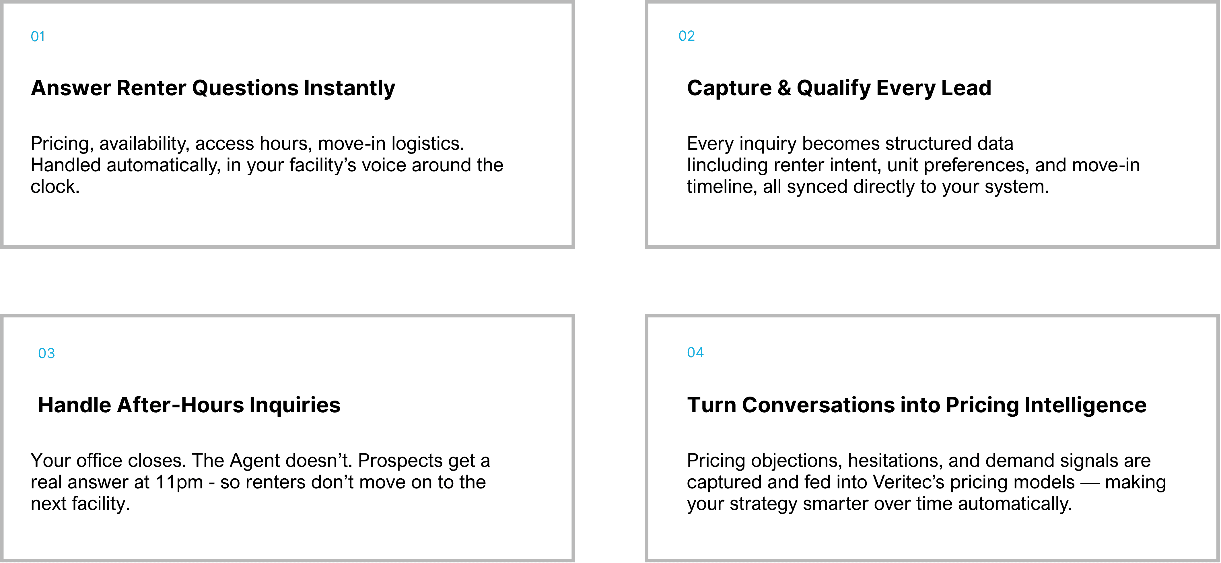 The Veritec AI Agent is purpose-built for Self-Storage.