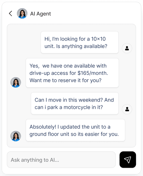 The Veritec AI Agent is purpose-built for Self-Storage.